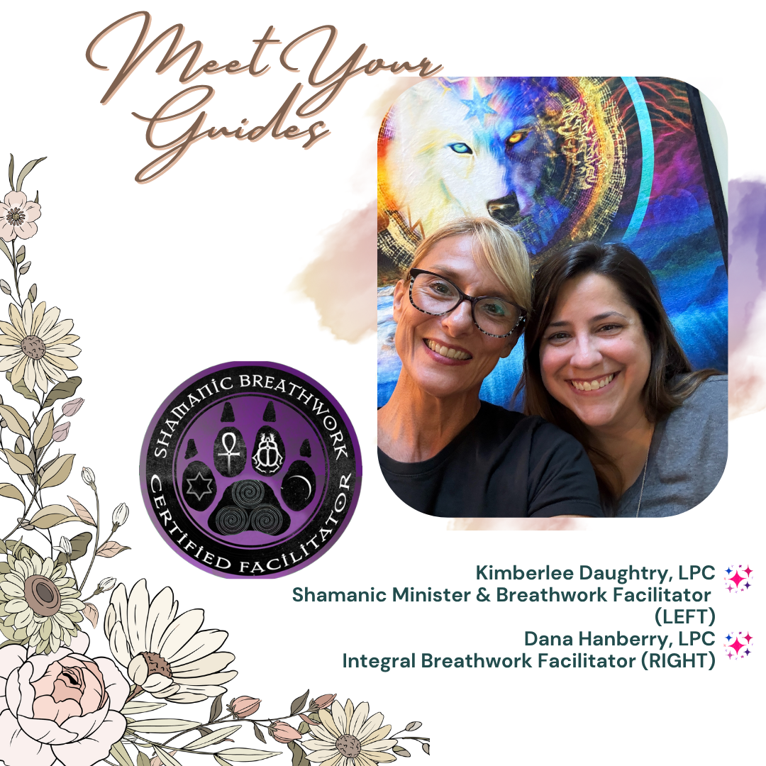 With years of combined experience in therapeutic and energetic healing practices, Kimberlee and Dana are honored to guide you through this transformational breathwork experience in a safe, sacred space.